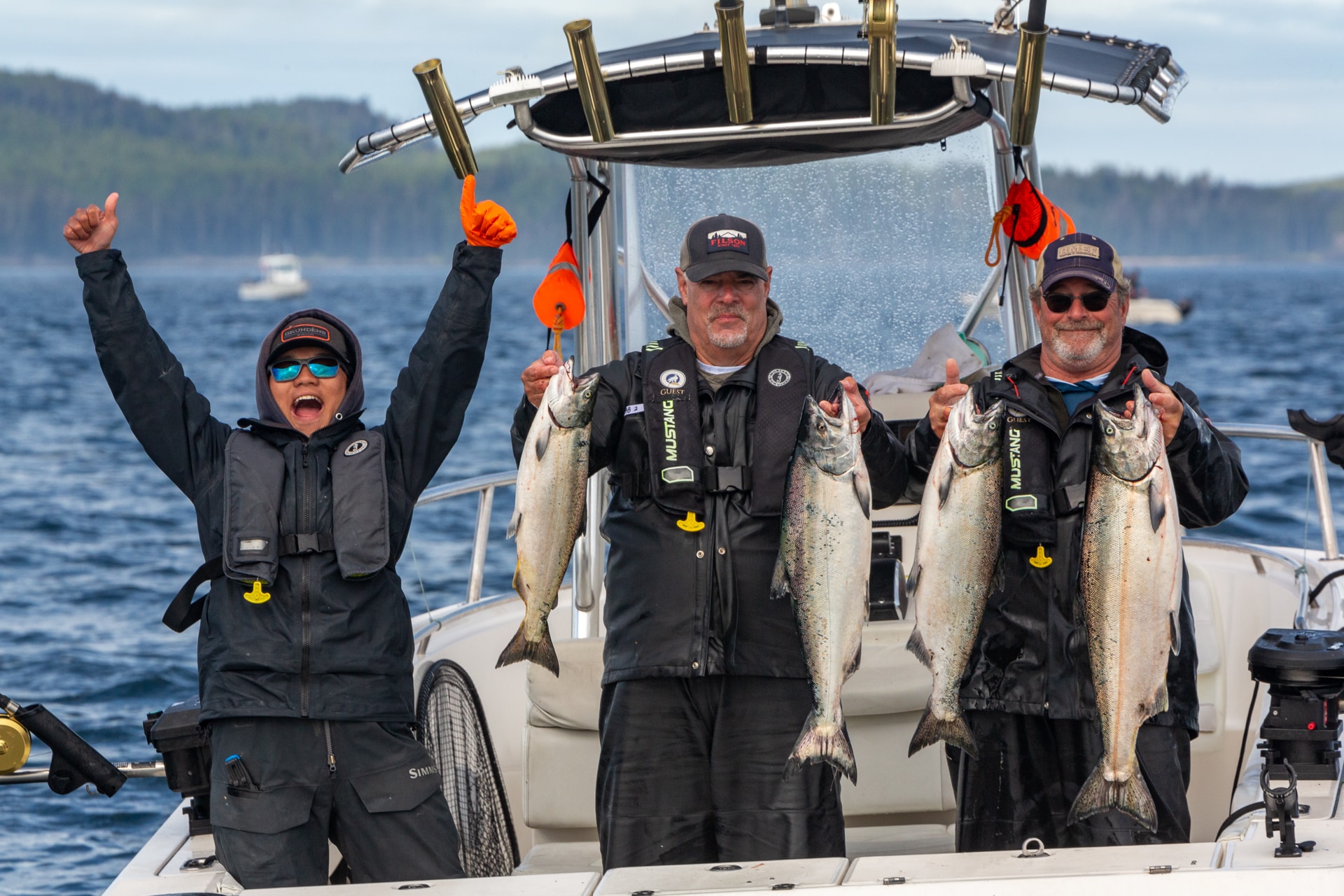 We had lots of great fish hit our docks each day including a 60lbs halibut!! With the current limits on the length of these fish it really doesn’t get any bigger than that! We also had our fair share of chinook over 20lbs and lots of cohos in between 8-10lbs. Those 20lbs chinooks are truly a blast to reel in and the cohos always put up a great fight. To top it all off we had two tyees that tied for the biggest fish of the week!
