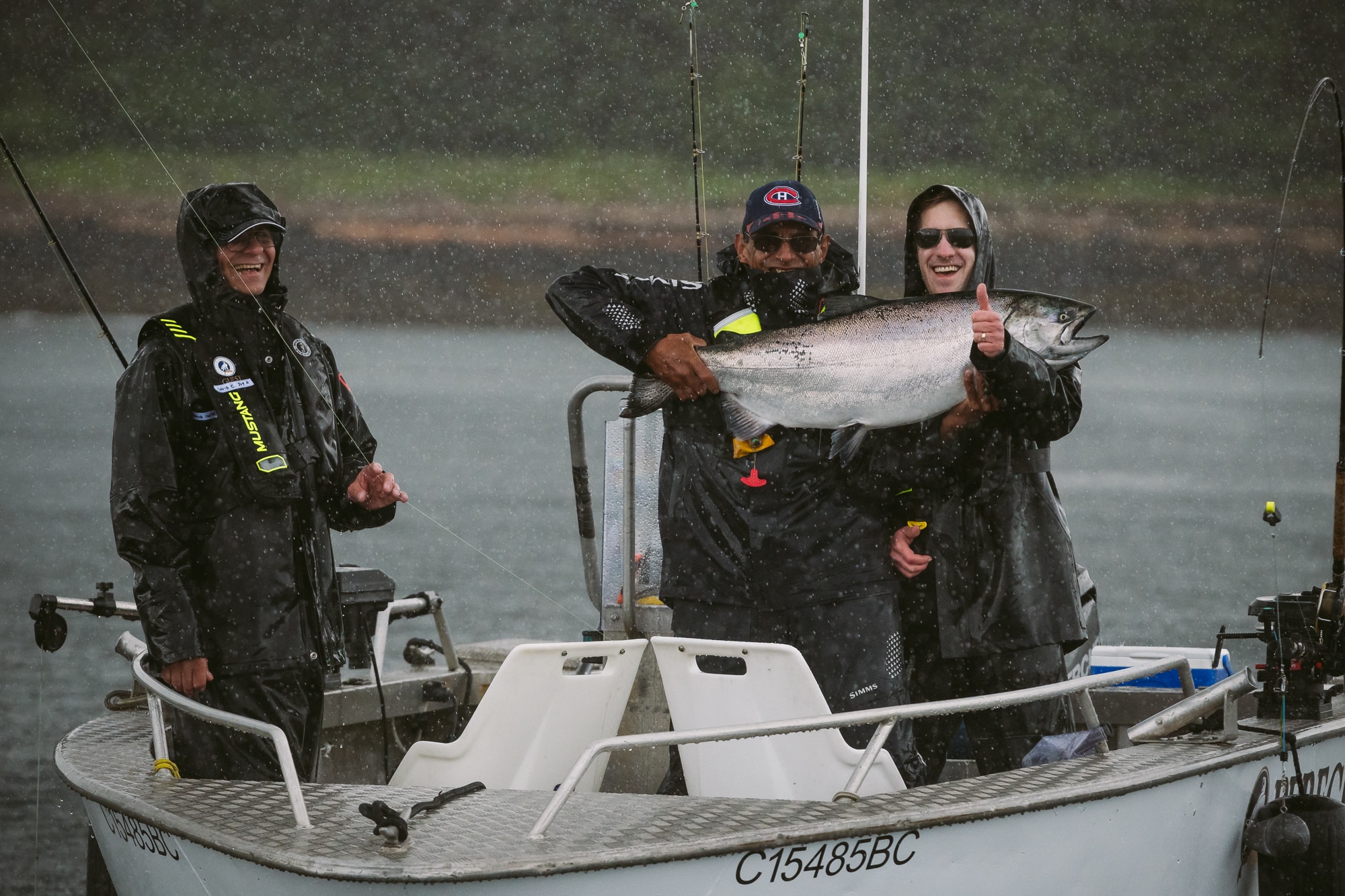 The quintessential Haida rain graced us at the end of the last day and as the guests fought off becoming slightly waterlogged with their hard working Simms gear, our local guide Albert lead Rob DuMerton to land our first 41 pound Tyee of the season. What a hog it was!